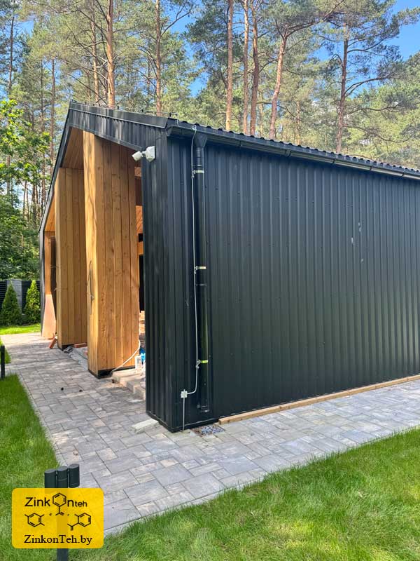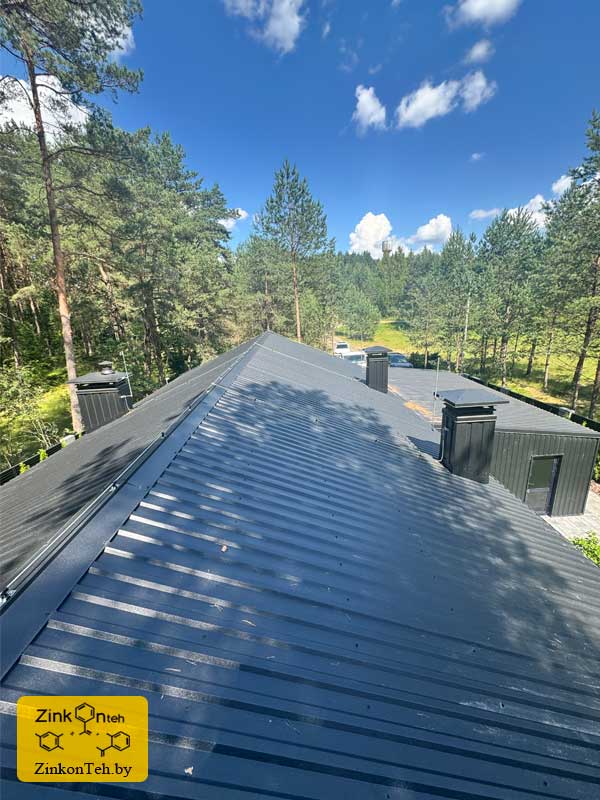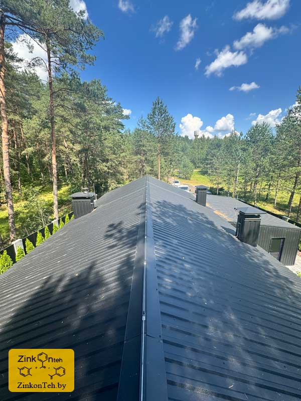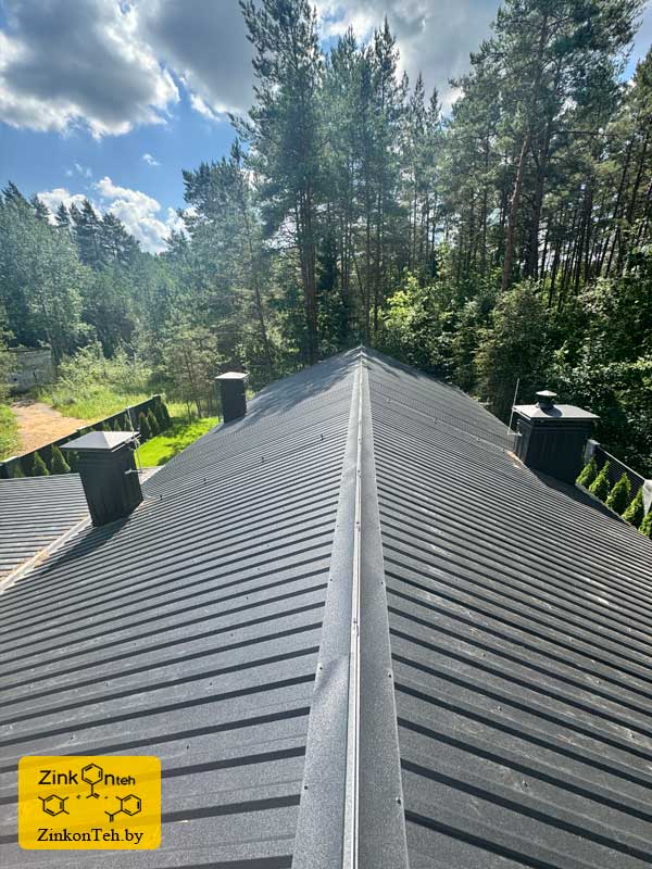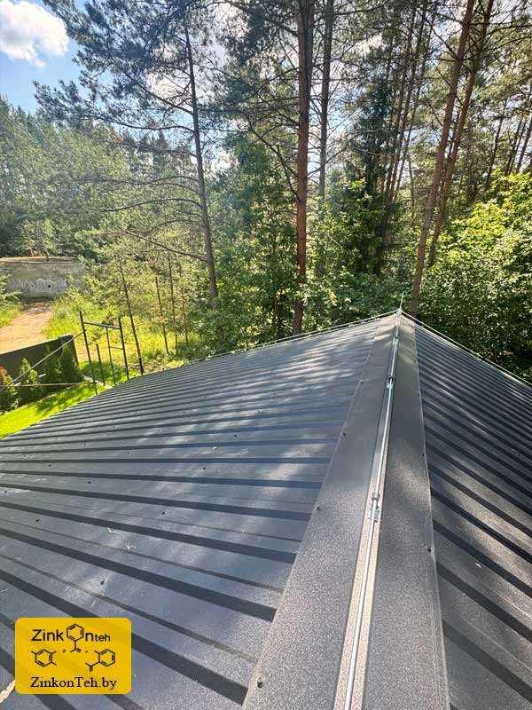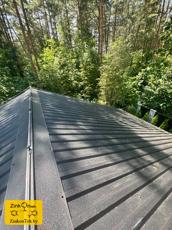 Молниезащита современного коттеджа с крышей из металлочерепицы.